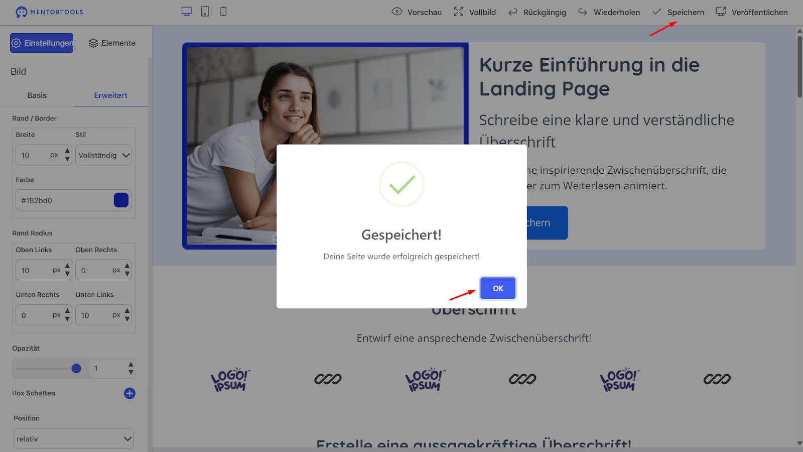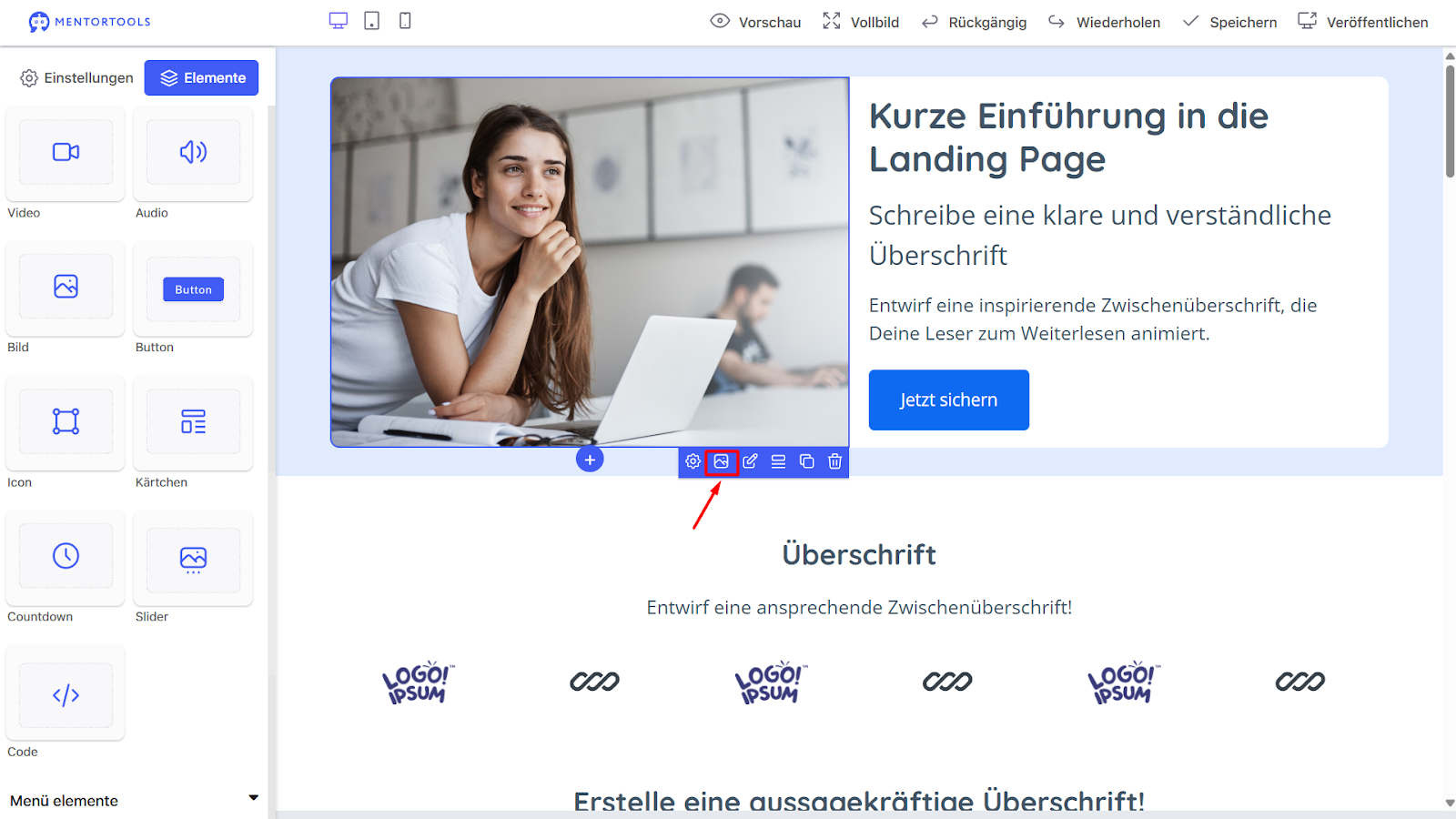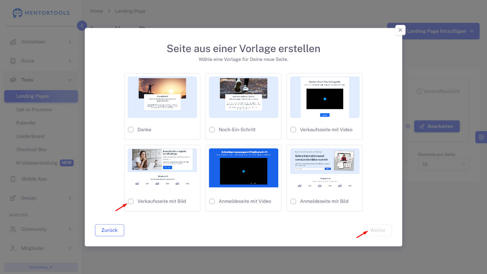 Erste Schritte mit dem Landing Page Builder in Mentortools