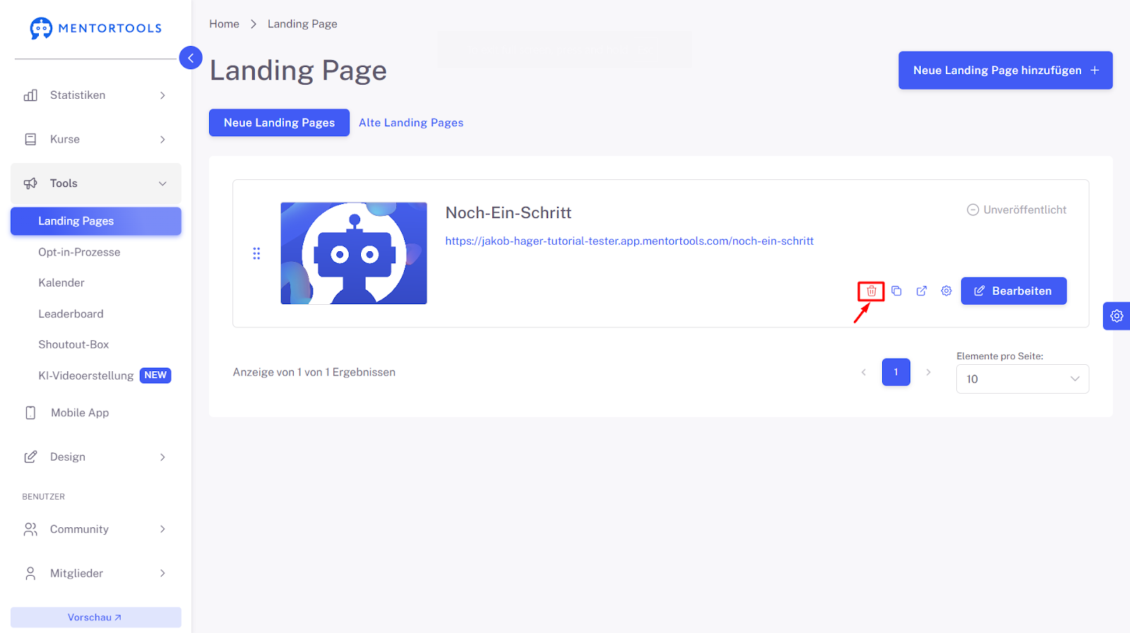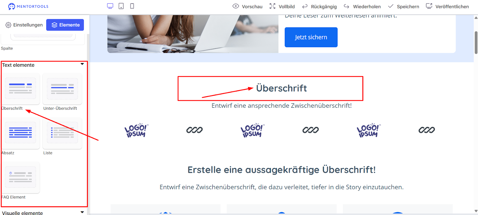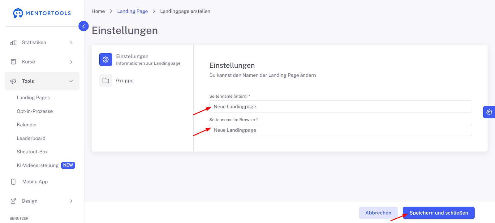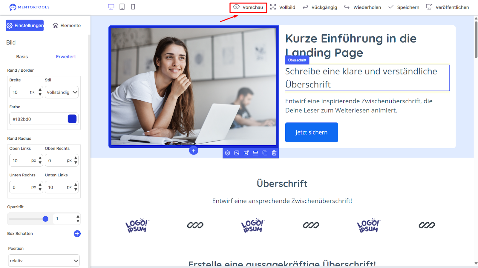 Erste Schritte mit dem Landing Page Builder in Mentortools